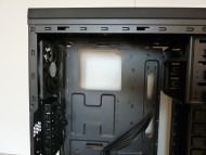 Le support de la carte mère a aussi des ouvertures pour permettre le passage des différents câbles. Sur l'envers on a de nombreux points d'attache pour effectuer un bon câble management.