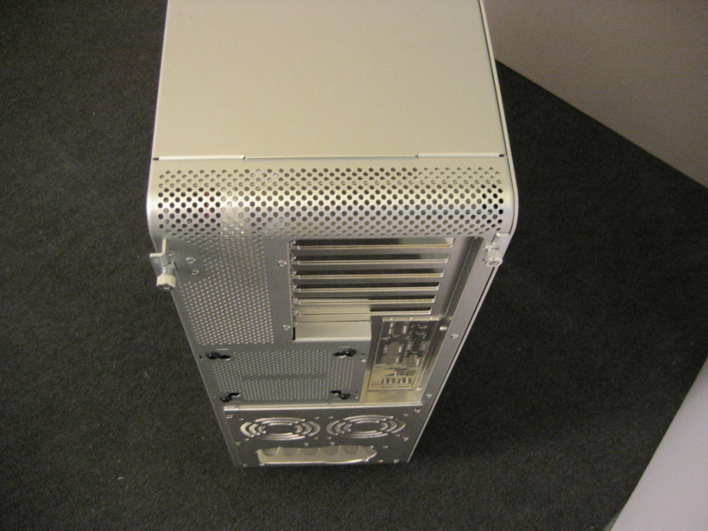 Avant de passer à l’intérieur de la tour, il faut bien entendu l’ouvrir. C’est la que j’ai vu un des meilleurs systèmes de fixations de panneau que j’ai jamais vu. Vous dévisser à la main une seule visse, vous tirez ensuite dessus et le panneau se détache… Vous n’avez qu’à le soulever